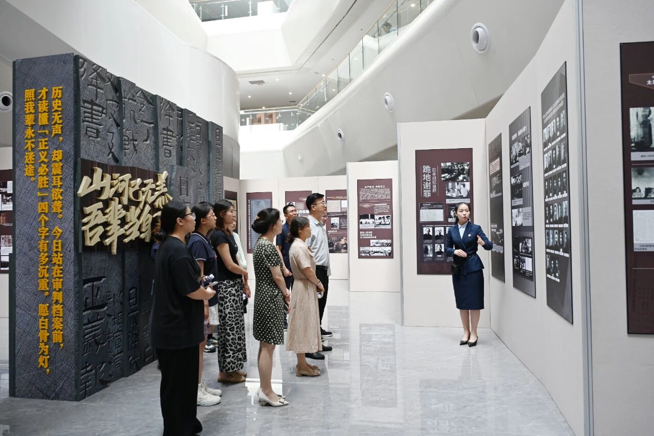 8月15日,《正义审判——新中国审判日本战犯史实特展》在市博物馆开展。党员干部在讲解员的现场导引下,仔细聆听一件件档案背后的故事,通过200余张历史照片,感受中国人民维护国家主权、捍卫民族尊严的坚定信念,引导党员干部不忘国耻、以史为鉴,自觉将对党忠诚和爱国情怀转化为服务中心大局的实际行动。