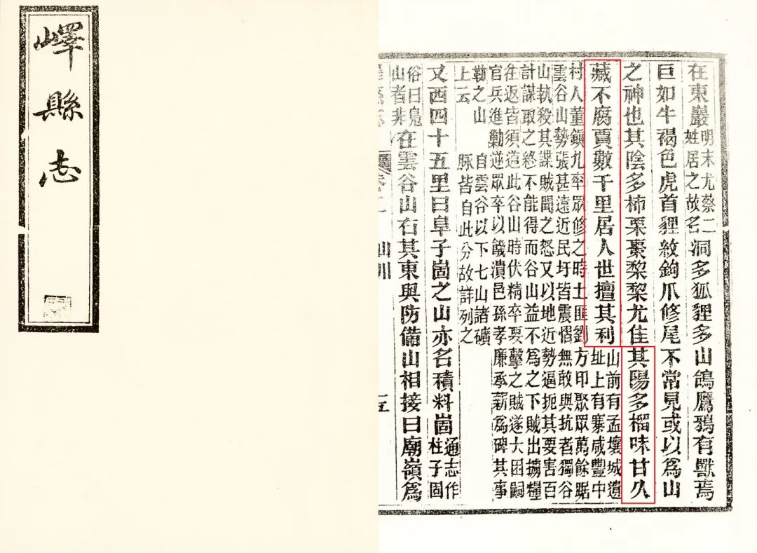 清光绪本《峄县志》中关于峄县石榴的记载(枣庄市档案馆馆藏)
