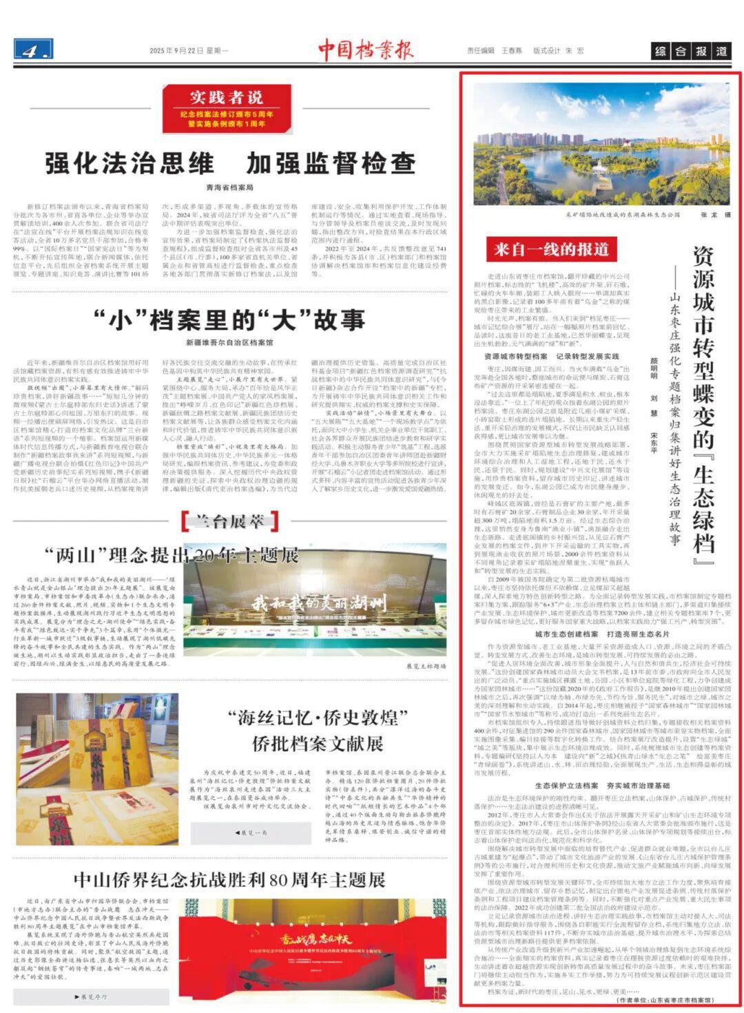 中国档案报 | 资源城市转型蝶变的“生态绿档”——山东枣庄强化专题档案归集讲好生态治理故事